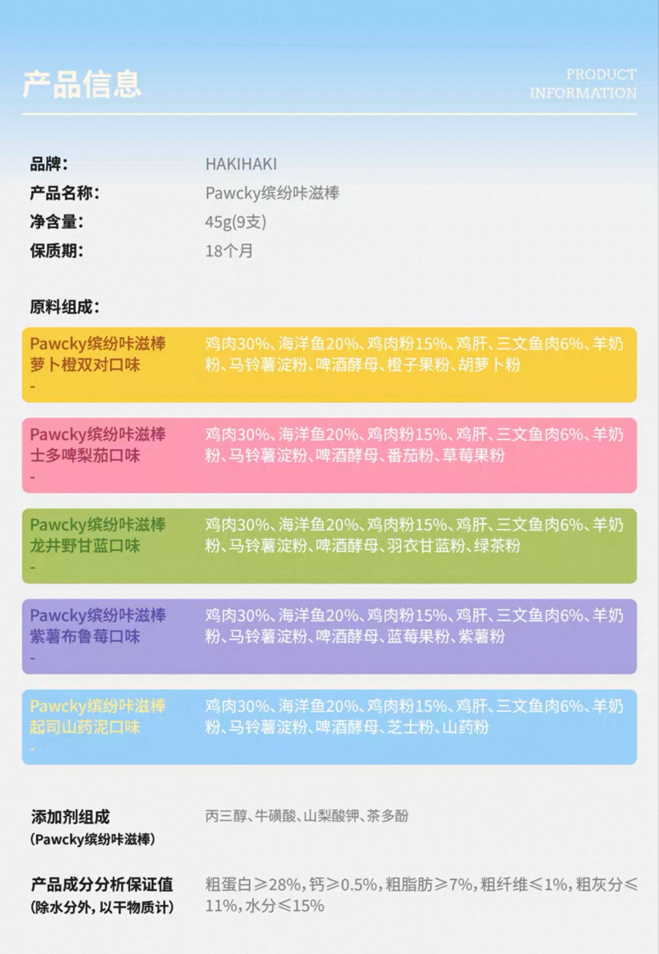 Additives (Pawcky Colorful Crunchy Sticks)