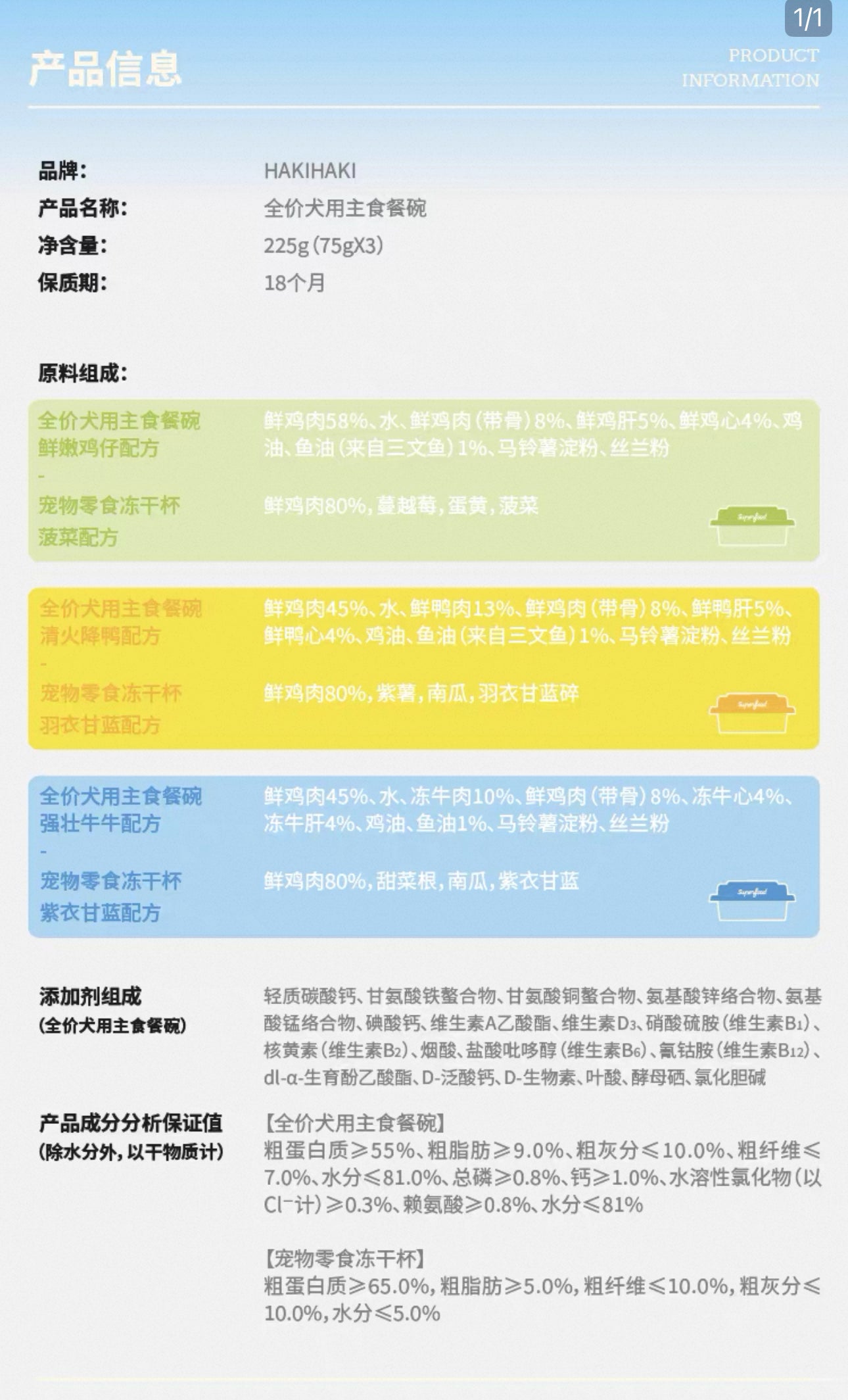 Fresh chicken meat 45%, water, frozen beef 10%, fresh chicken meat (with bone) 8%, frozen beef heart 4%, frozen beef liver 4%, chicken oil, fish oil 1%, potato starch, yucca powder